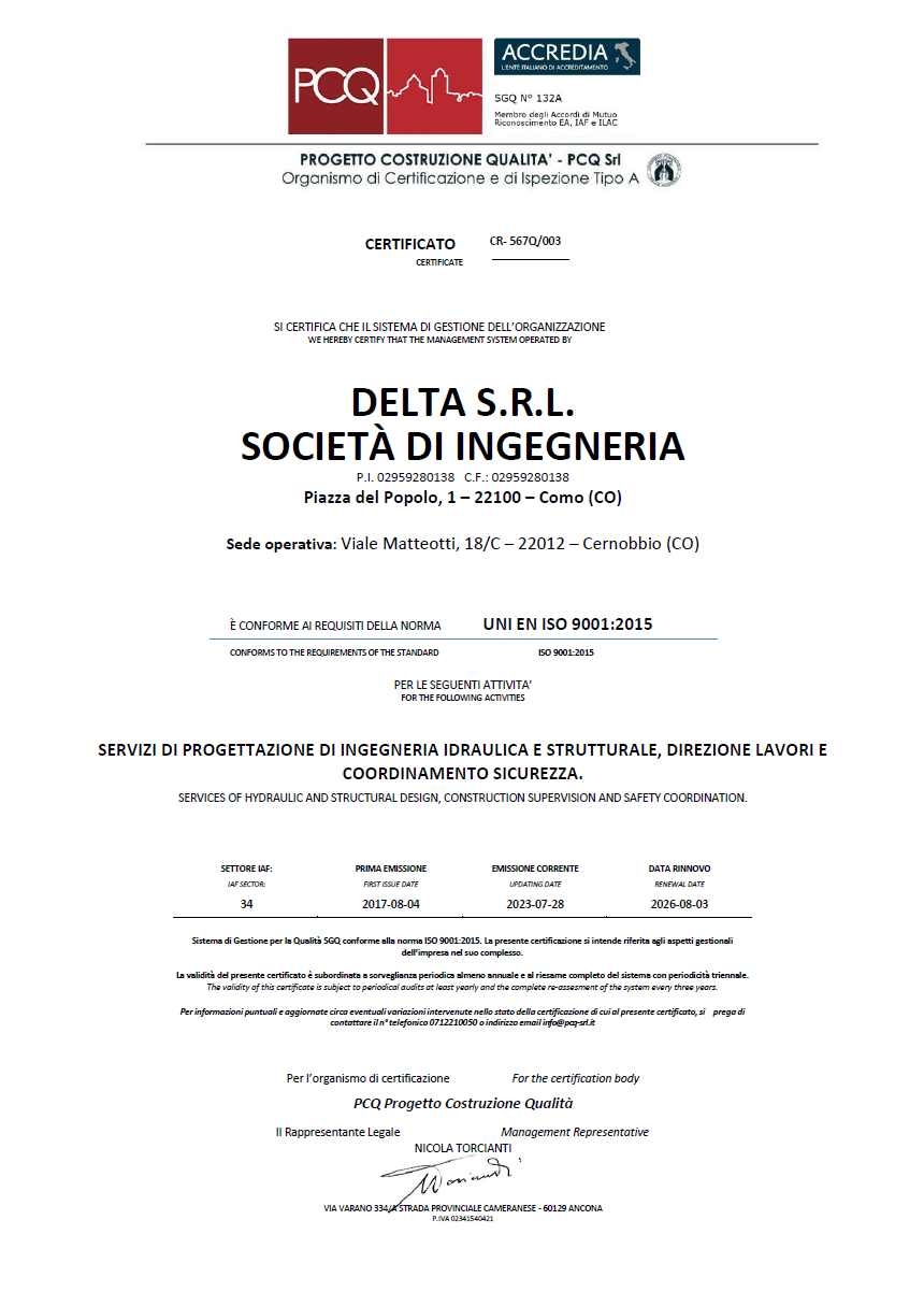 CERTIFICATO ISO 9001 DELTA COMO SRL - IMPRESA DI COSTRUZIONI